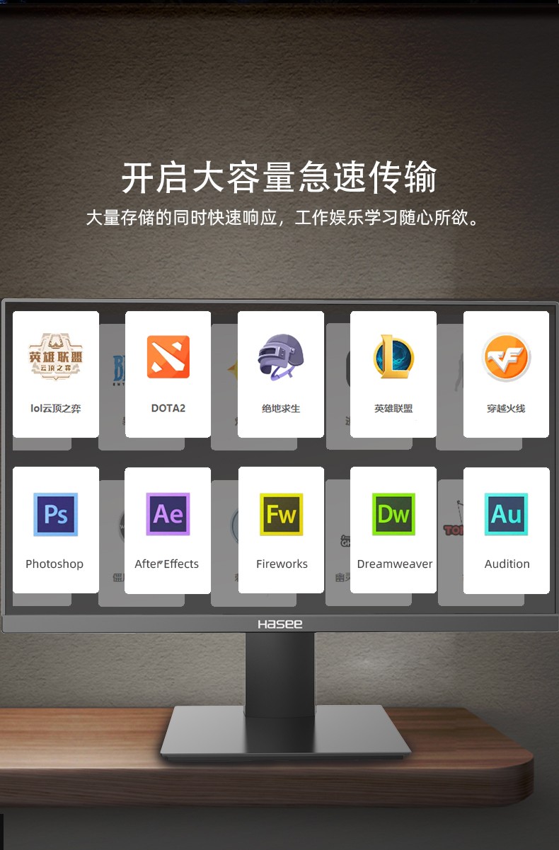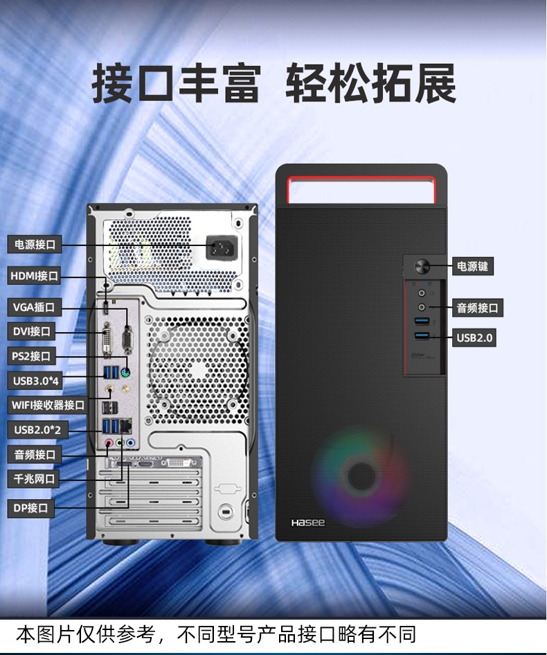 神舟HFMPB516台式电脑 /I5-10400 /16G DDR4/256GBSSD+1TB/RX550 4G独显/B460主板/DOS/23.8显示器